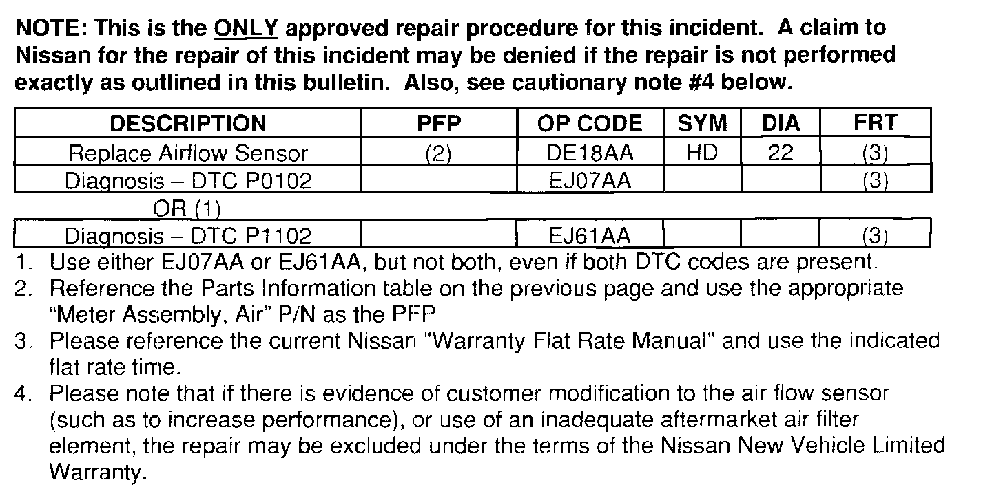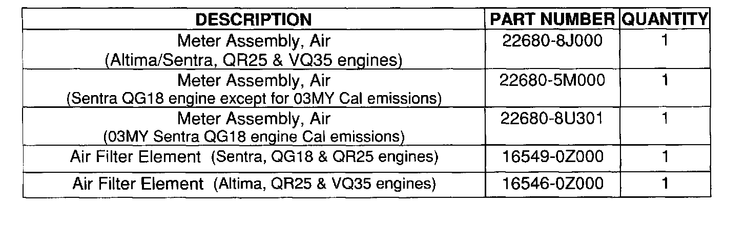 ^ A new Genuine Nissan air filter element must be used for all warranty claims and any other claim for which Nissan pays.