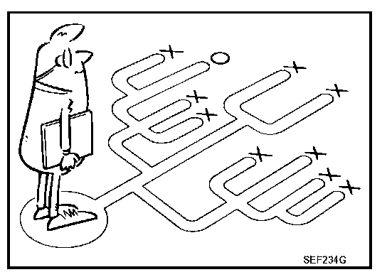 A visual check only may not find the cause of the incidents. A road test with CONSULT-II (or GST) or a circuit tester connected should be performed. Follow the "Work Flow".
