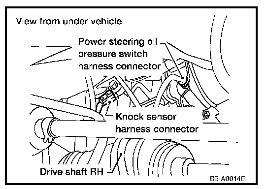 The knock sensor is attached to the cylinder block. It senses engine knocking using a piezoelectric element. A knocking vibration from the cylinder block is sensed as vibrational pressure. This pressure is converted into a voltage signal and sent to the ECM.