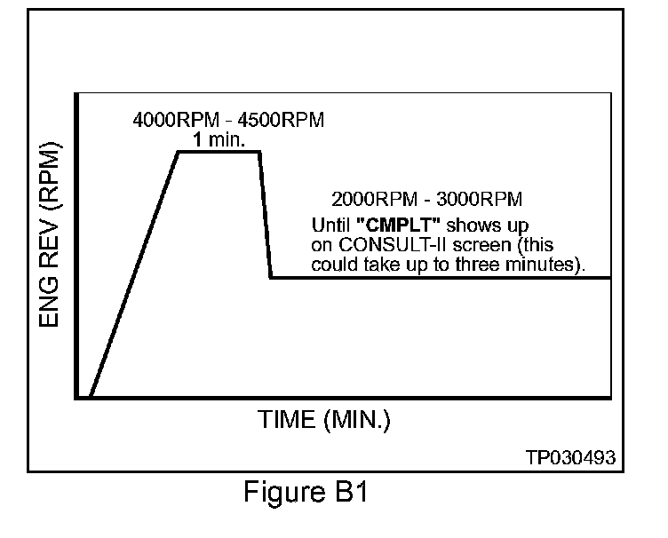 ^ In some cases, it could take up to three minutes at 2000 to 3000 RPM for "CMPLT" to show up on the CONSULT-II screen.