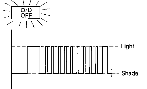 Selector lever in "D" and vehicle speed higher than 40 km/h (25 MPH), engine speed higher than 1,500 rpm, throttle opening greater than 1/8 of the full throttle position and driving for more than 5 seconds.