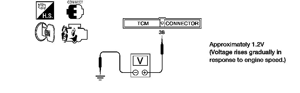 2. Check voltage between TCM terminal 38 and ground (measure in AC range).