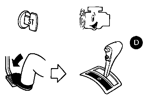2. Start engine, apply foot brake, place selector lever in D position and wait a few minutes.