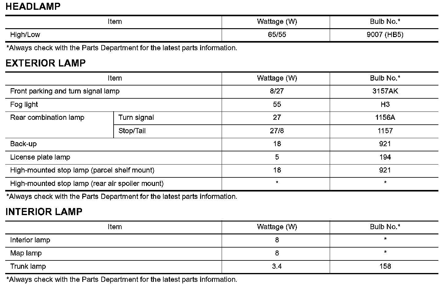 Bulb Specifications: