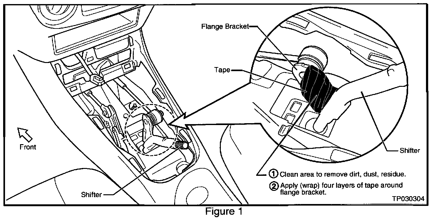 ^ Apply (wrap) four layers of vinyl (electrical) tape around the Flange Bracket (see Figure 1). This will help prevent contact/rubbing between the Flange Bracket and the Console Boot.