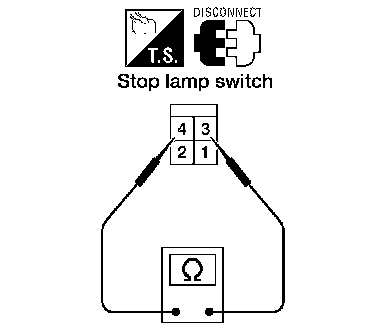 2. Harness for open or short stop lamp switch harness connector M26 terminal 4 and A/T device harness connector M44 terminal 7 (G).