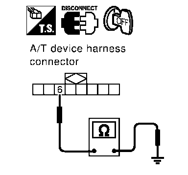 3. Check continuity between A/T device harness M44 terminal 6 (B) and ground.