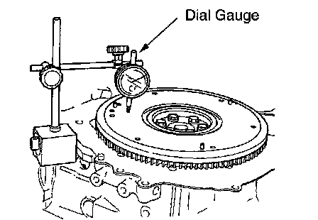Measure runout of flywheel contact surface to the clutch with a dial gauge.
