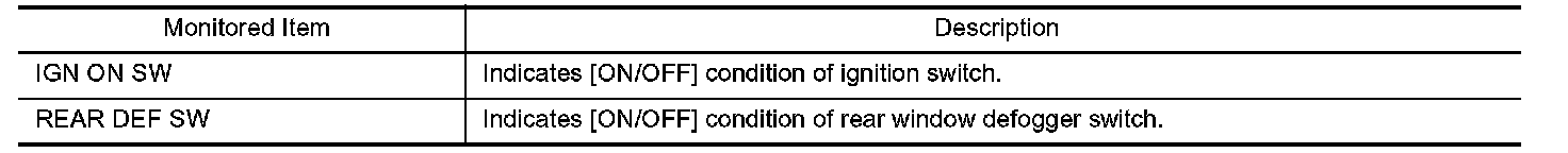 Consult-II Application Items (With Power Door Locks) "Rear Defogger" - Data Monitor: