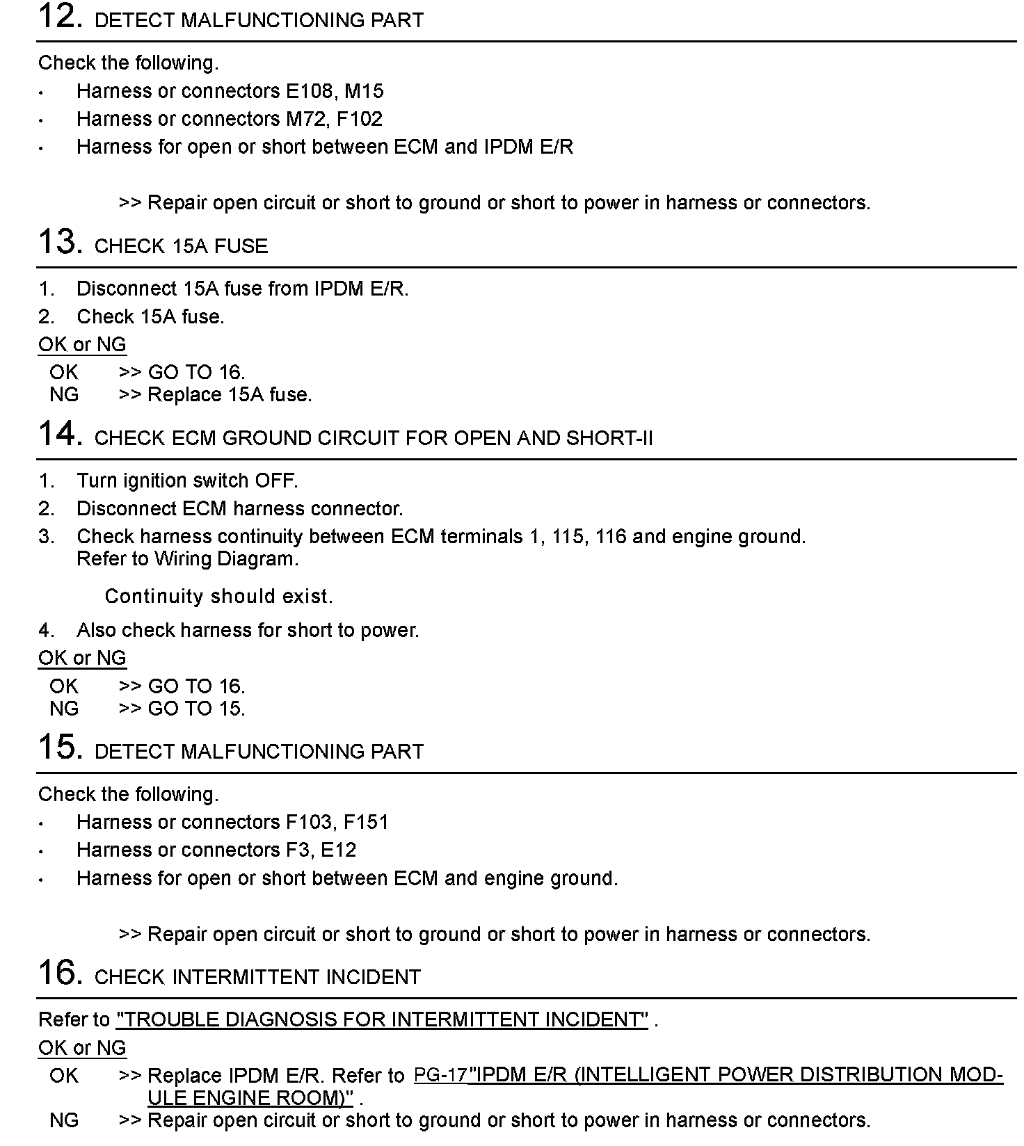 Diagnostic Procedure (Steps 12 - 16):