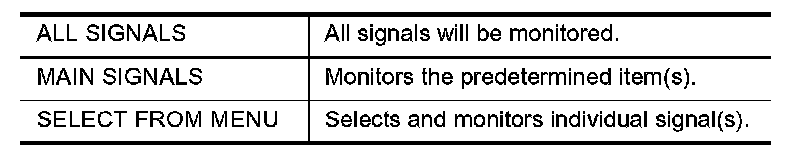2. Touch "ALL SIGNALS", "MAIN SIGNALS" or "SELECT FROM MENU" on the "DATA MONITOR" screen.