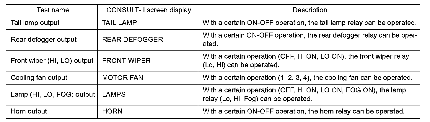 IPDM E/R (INTELLIGENT POWER DISTRIBUTION MODULE ENGINE ROOM)CONSULT-II Function: