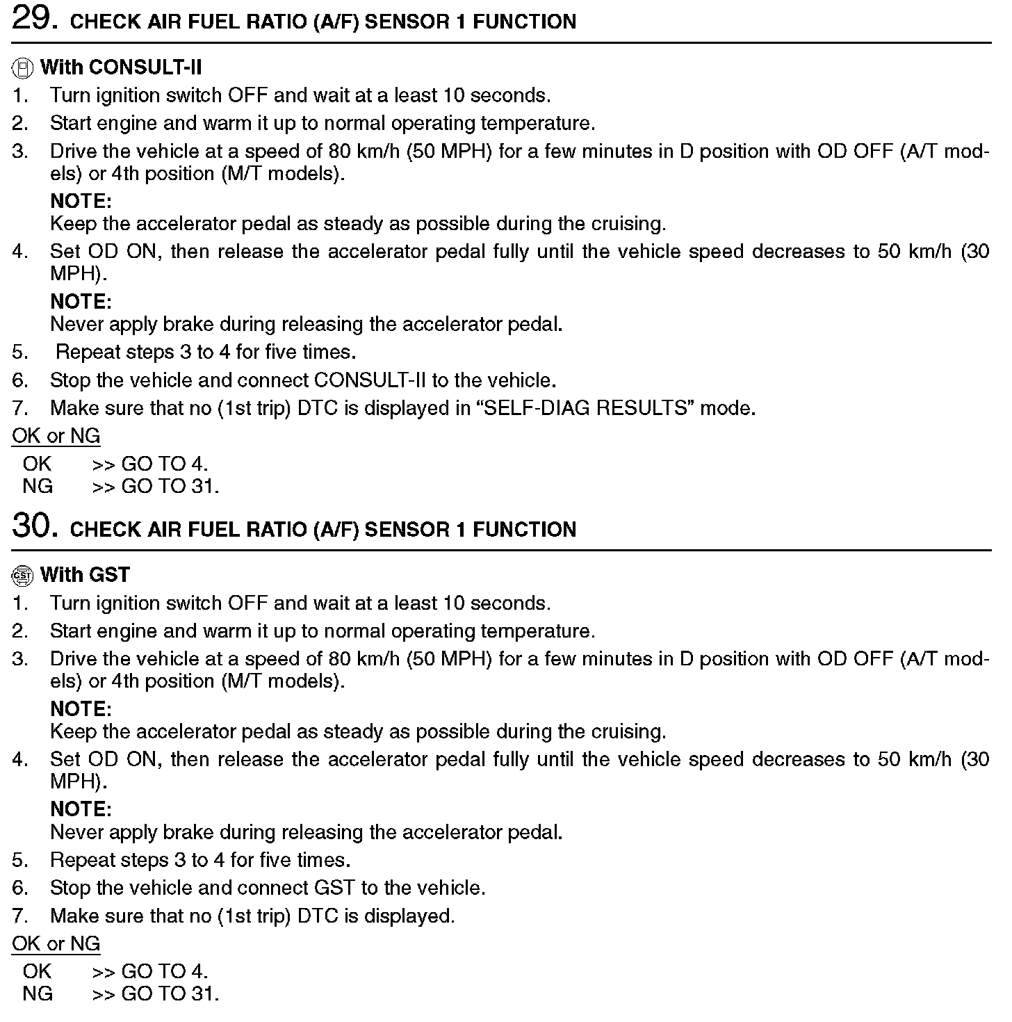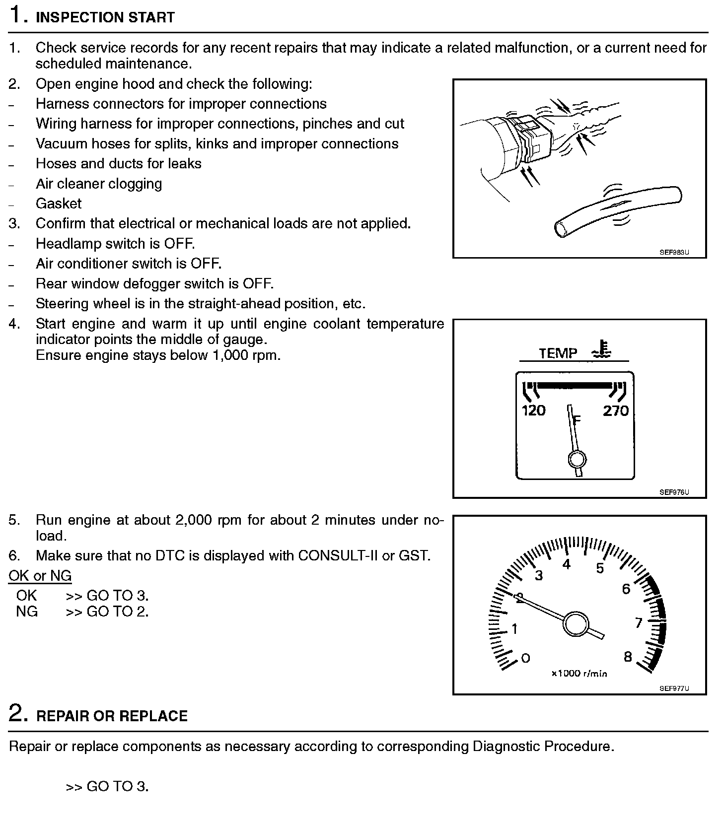 2. On air conditioner equipped models, checks should be carried out while the air conditioner is OFF.