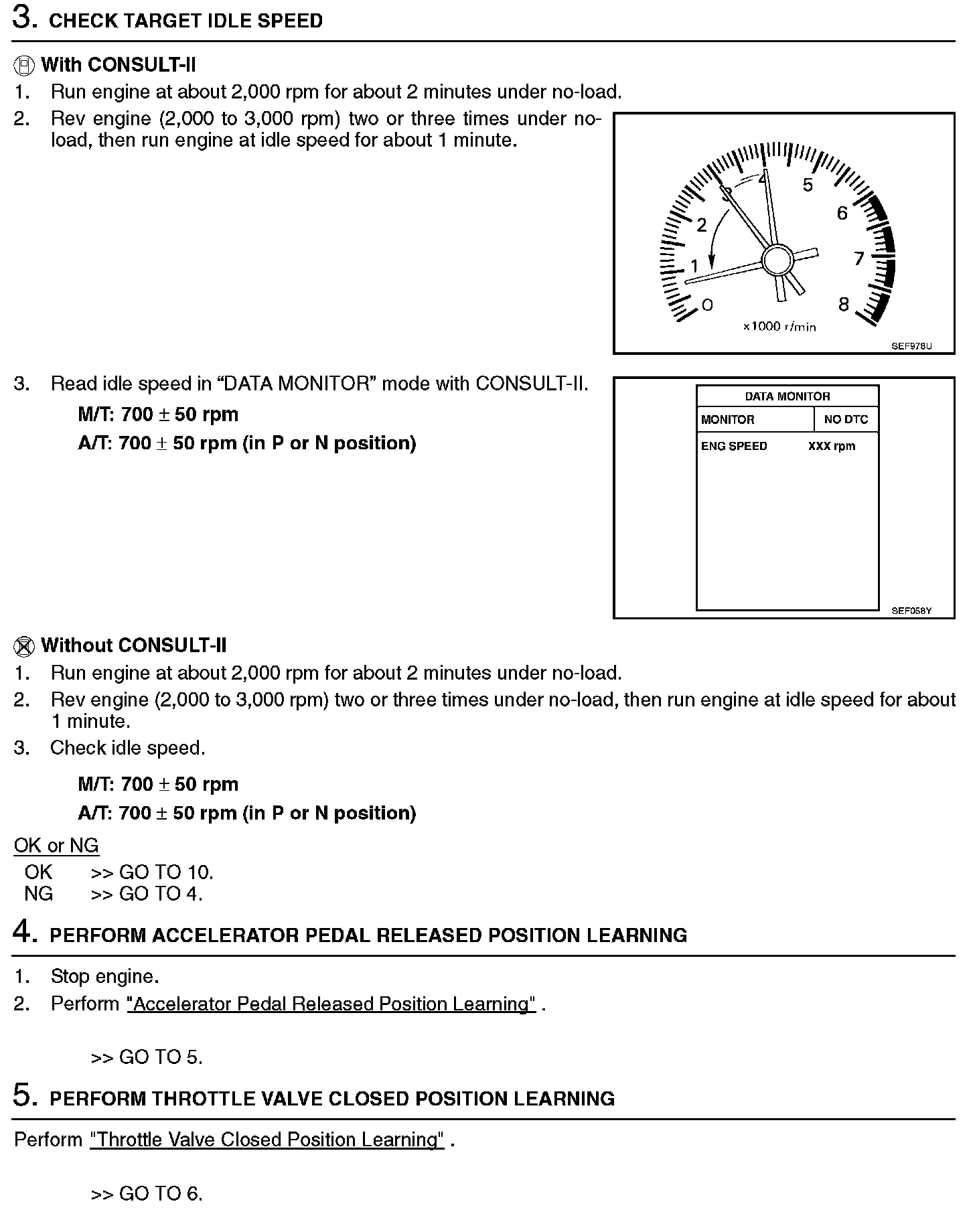 3. On automatic transmission equipped models, when checking idle rpm, ignition timing and mixture ratio, checks should be carried out while shift lever is in N position.