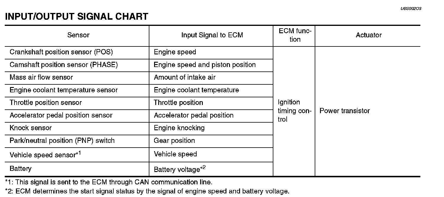 Electronic Ignition (EI) SystemInput/Output Signal Chart: