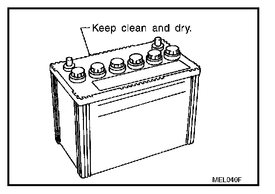 - The battery surface (particularly its top) should always be kept clean and dry.