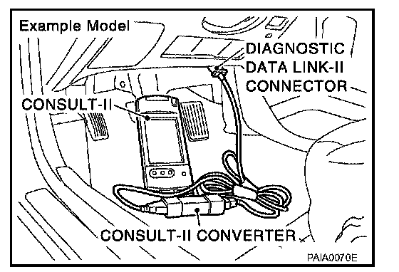 2. Connect CONSULT-II and CONSULT-II CONVERTER to the data link connector.