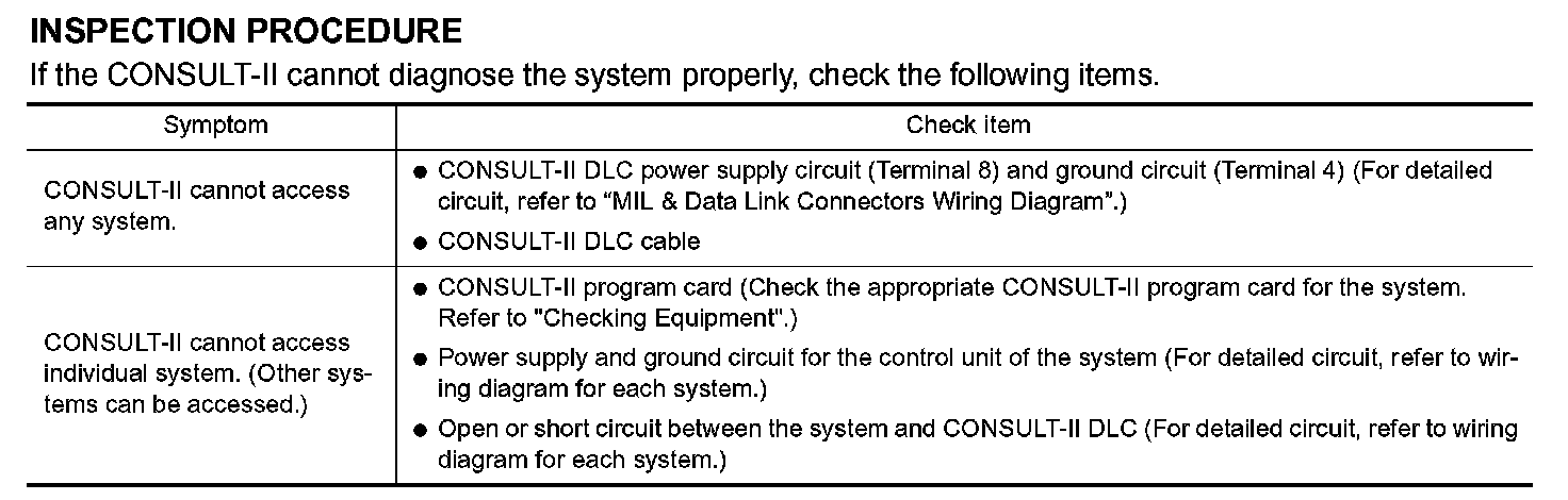 If the CONSULT-II cannot diagnose the system properly, check the given items.