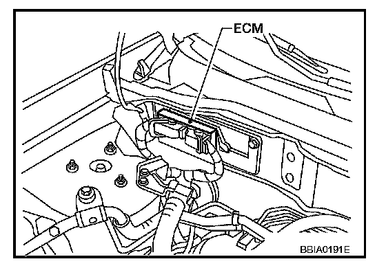1. ECM is located in the right side of the cowl top (behind the strut tower).