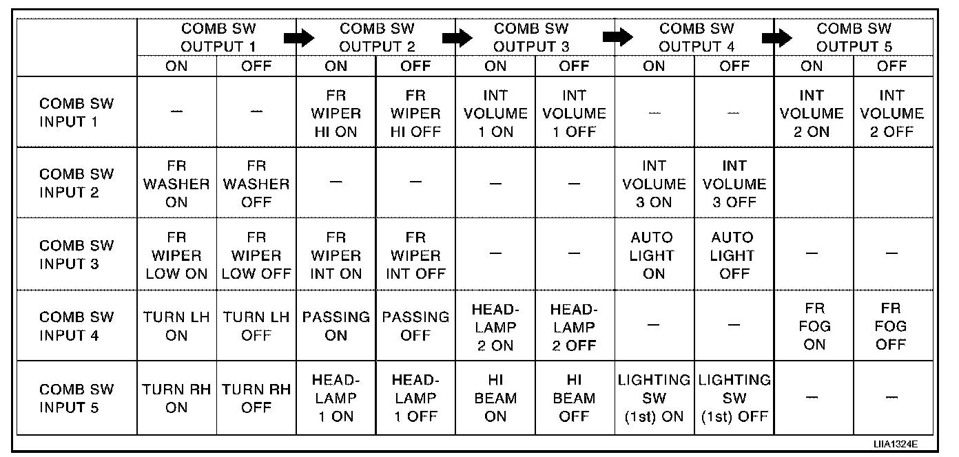 - BCM reads operation status of combination switch by the combination shown in the table.