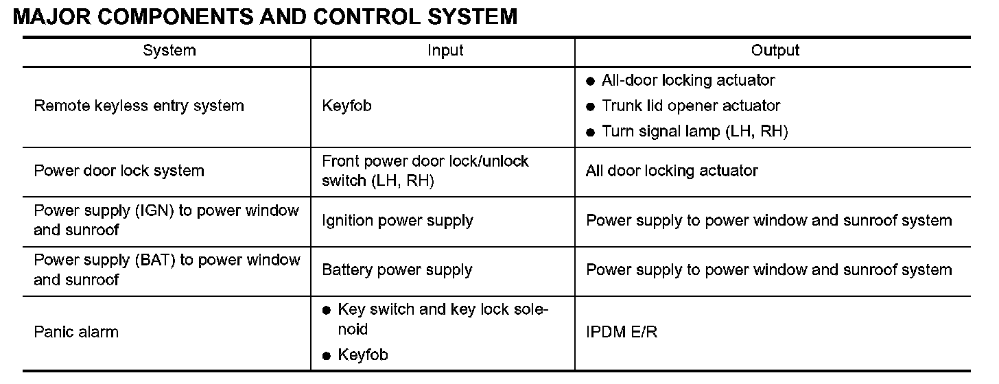 - Keyfob (lock/unlock signal) - front door key cylinder switch LH