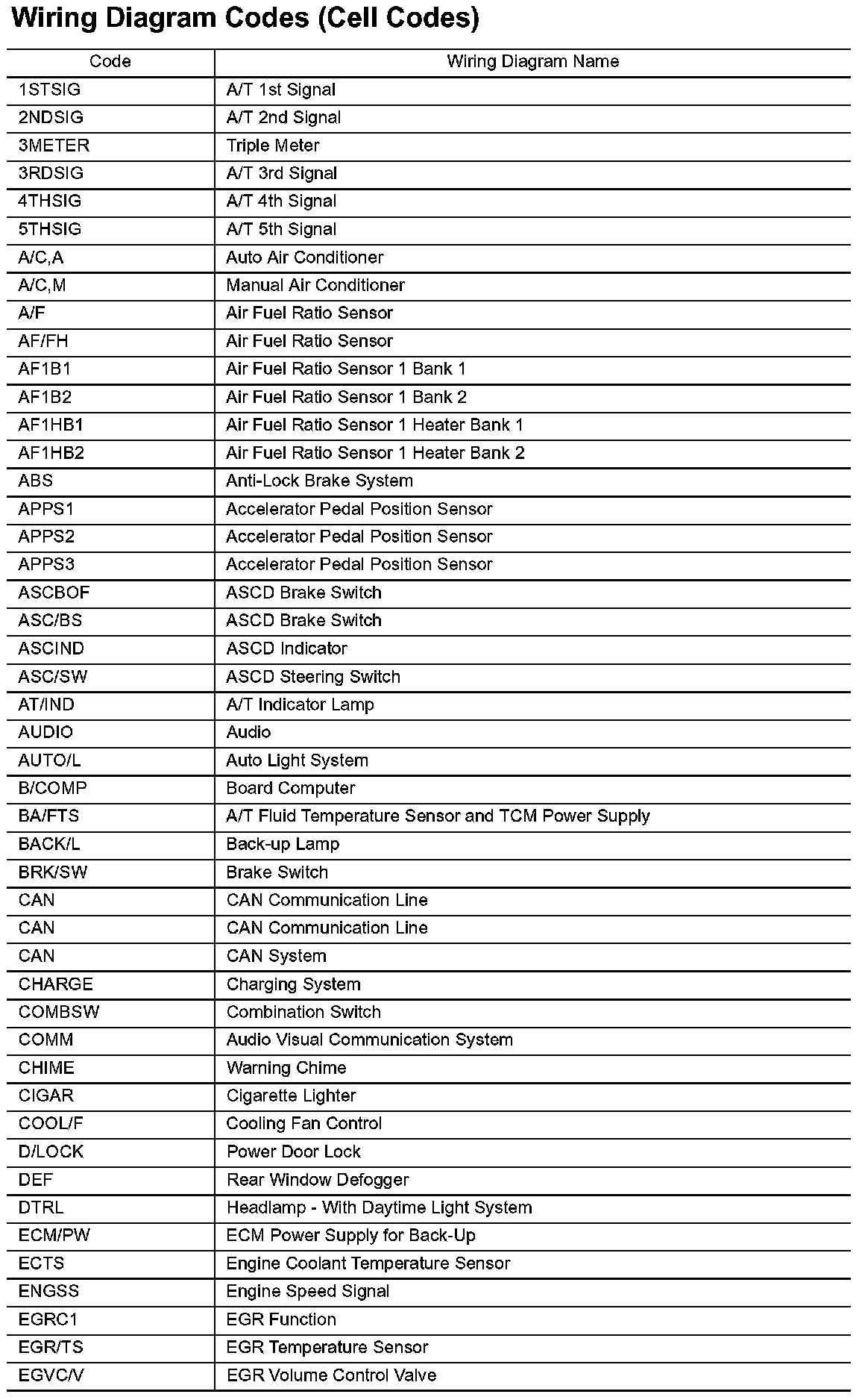 Wiring Diagram Codes/Abbreviations Part 1: