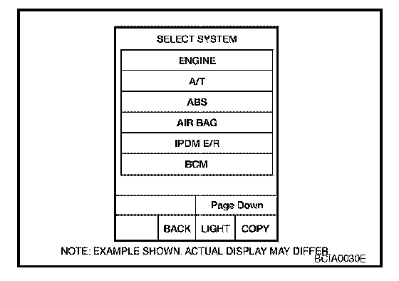 3. Touch "BCM" on "SELECT SYSTEM" screen.