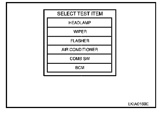 4. Select item to be diagnosed on "SELECT TEST ITEM" screen.