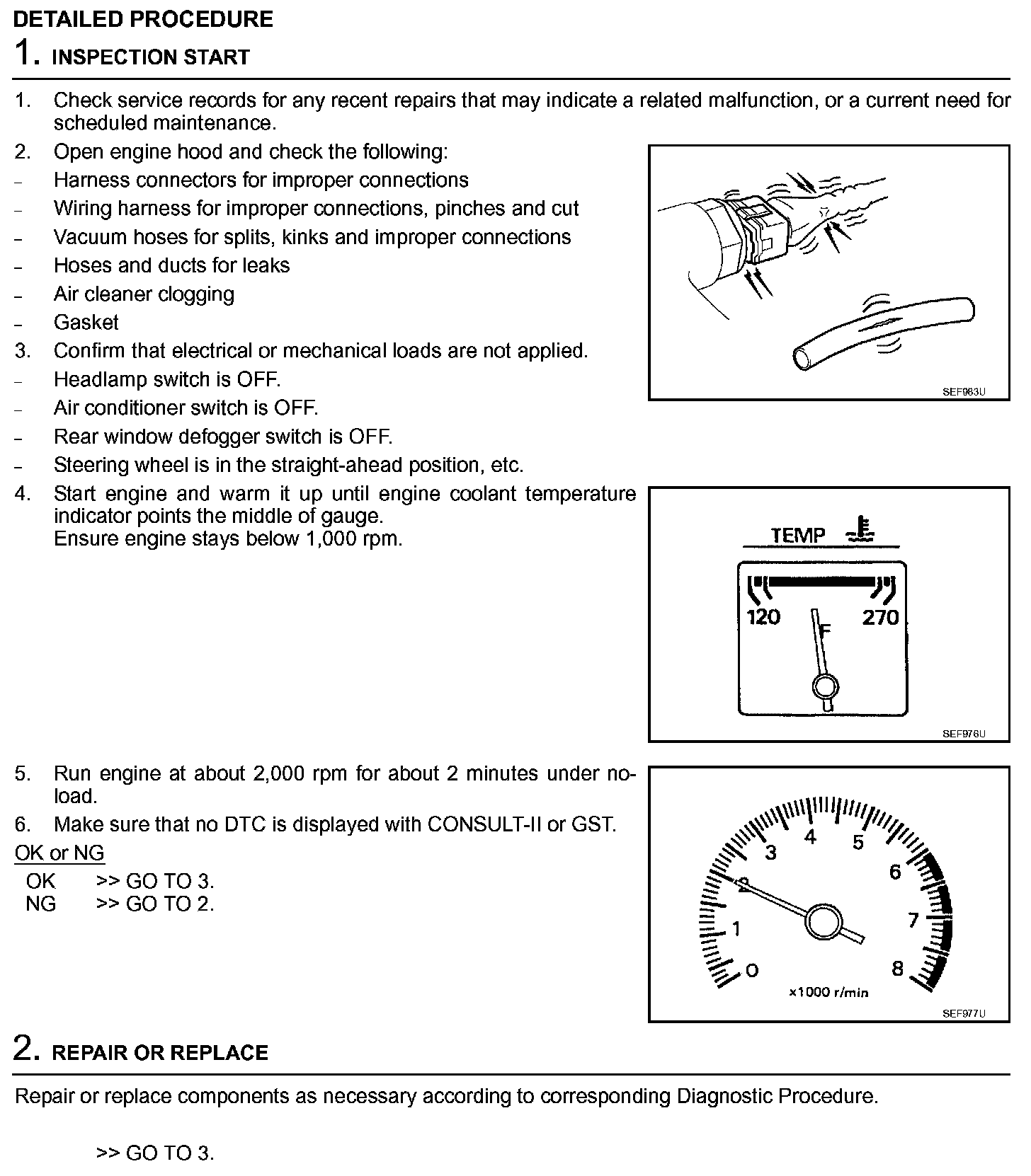 2. On air conditioner equipped models, checks should be carried out while the air conditioner is OFF.