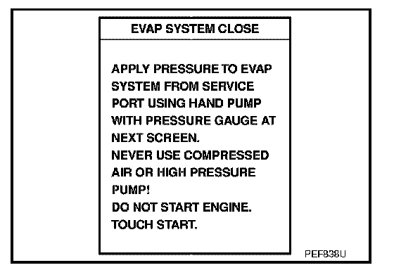 4. Select the "EVAP SYSTEM CLOSE" of "WORK SUPPORT MODE" with CONSULT-II.