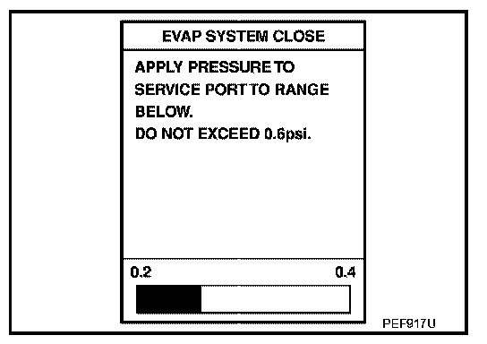 6. Apply positive pressure to the EVAP system until the pressure indicator reaches the middle of the bar graph.