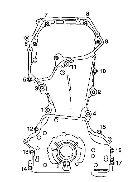 Tighten front cover bolts in the numerical order as shown.