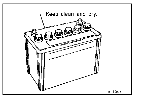 - The battery surface (particularly its top) should always be kept clean and dry.