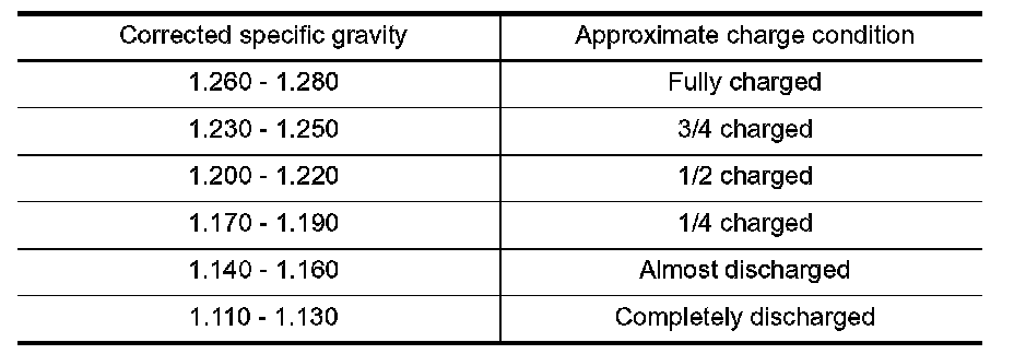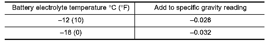 Use the given chart to correct your hydrometer reading according to electrolyte temperature.