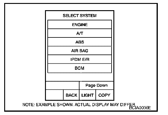 NOTE: CONSULT-II will only display systems the vehicle possesses.