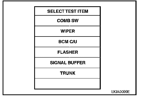 4. Select item to be diagnosed on "SELECT TEST ITEM" screen.