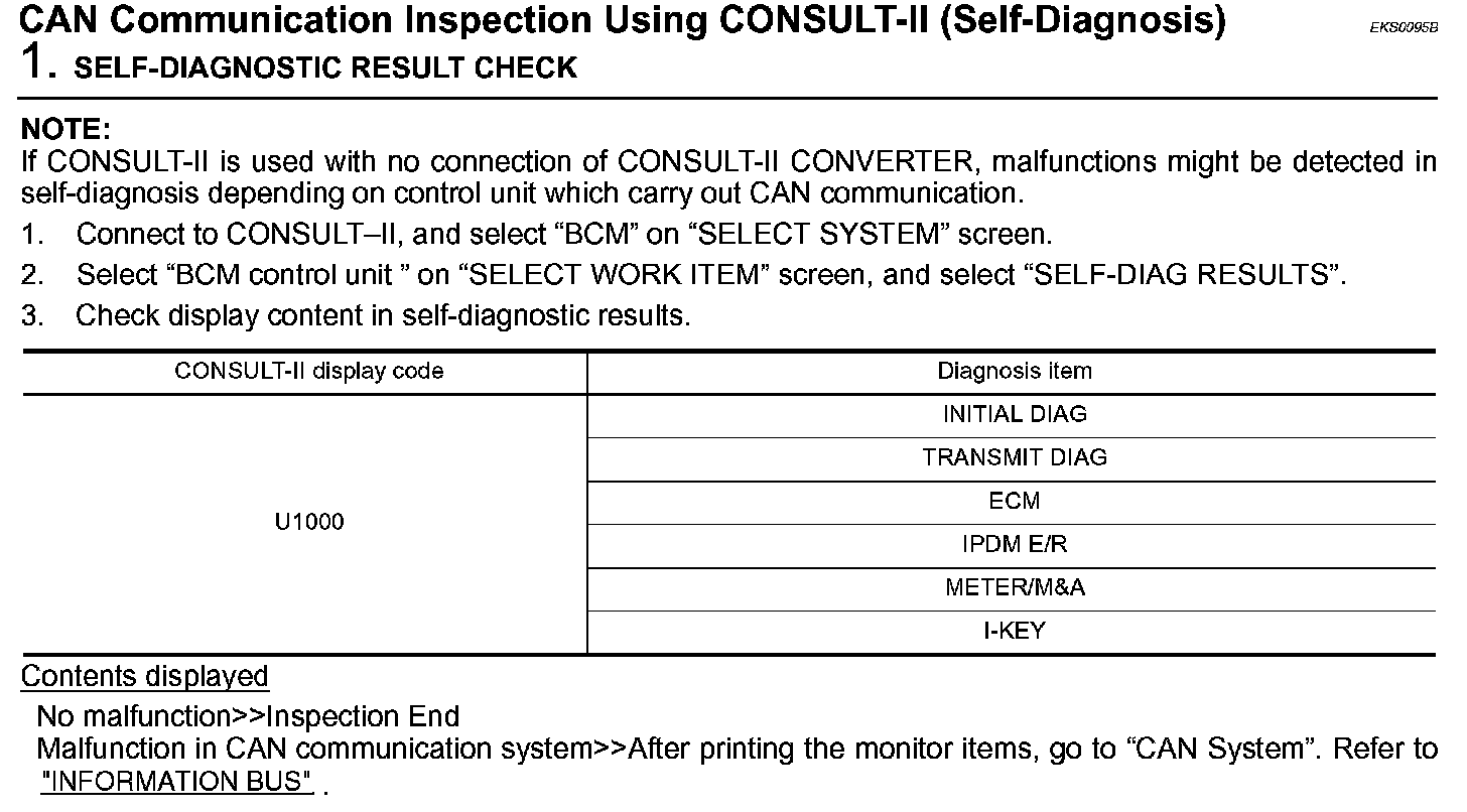 CAN Communication Inspection Using CONSULT-II (Self-Diagnosis):