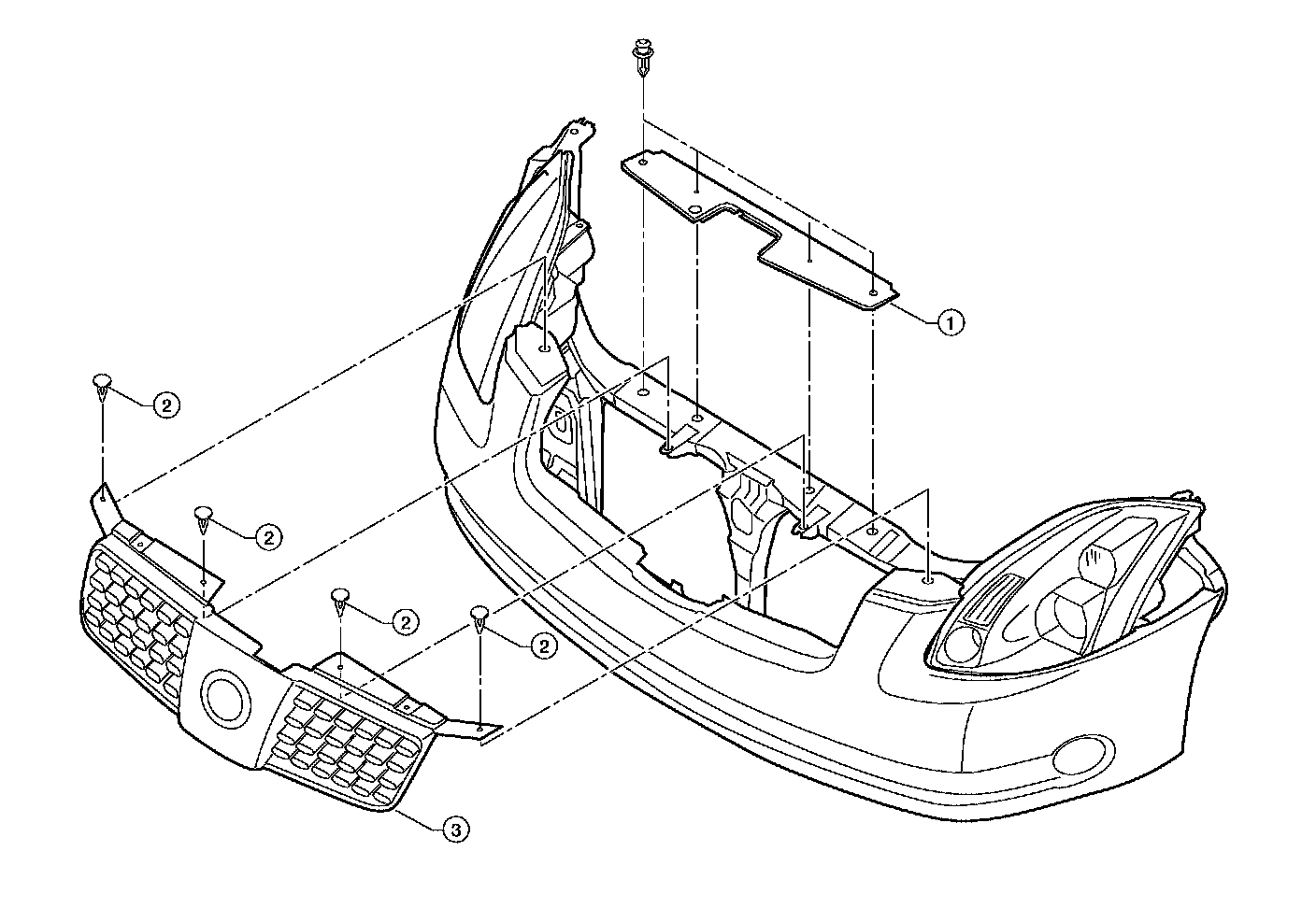 1. Remove 4 clips attaching grille top cover and remove grille top cover.
