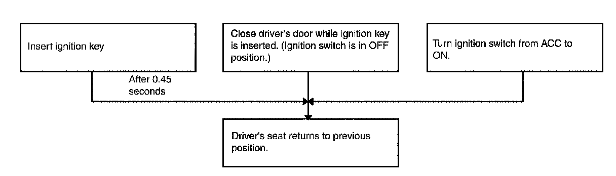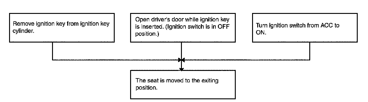 When the seat is in the exiting position, the operation moves the seat and the steering wheel to the previous position before the exiting operation.