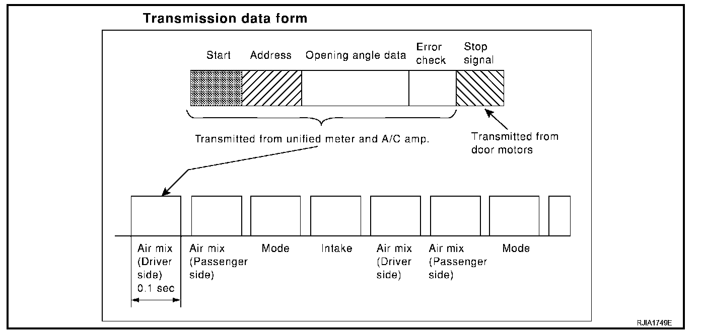 Unified meter and A/C amp. data is transmitted consecutively to each of the door motors following the form shown in figure.