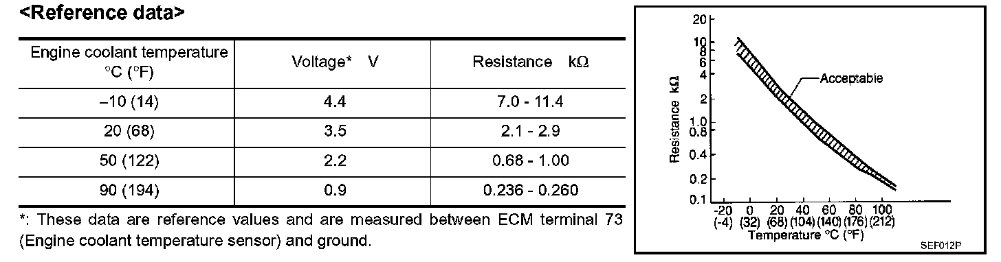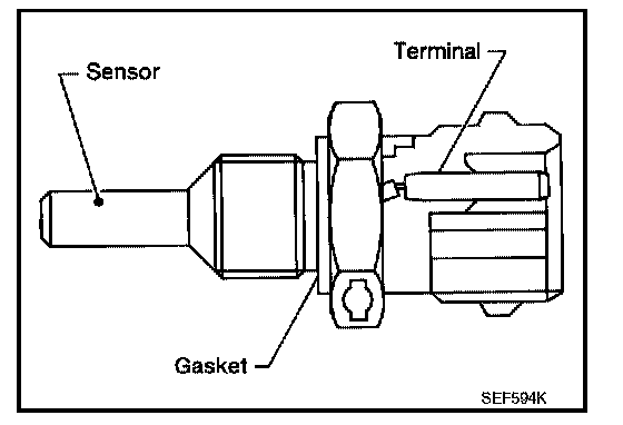 The engine coolant temperature sensor is used to detect the engine coolant temperature. The sensor modifies a voltage signal from the ECM. The modified signal returns to the ECM as the engine coolant temperature input. The sensor uses a thermistor which is sensitive to the change in temperature. The electrical resistance of the thermistor decreases as temperature increases.