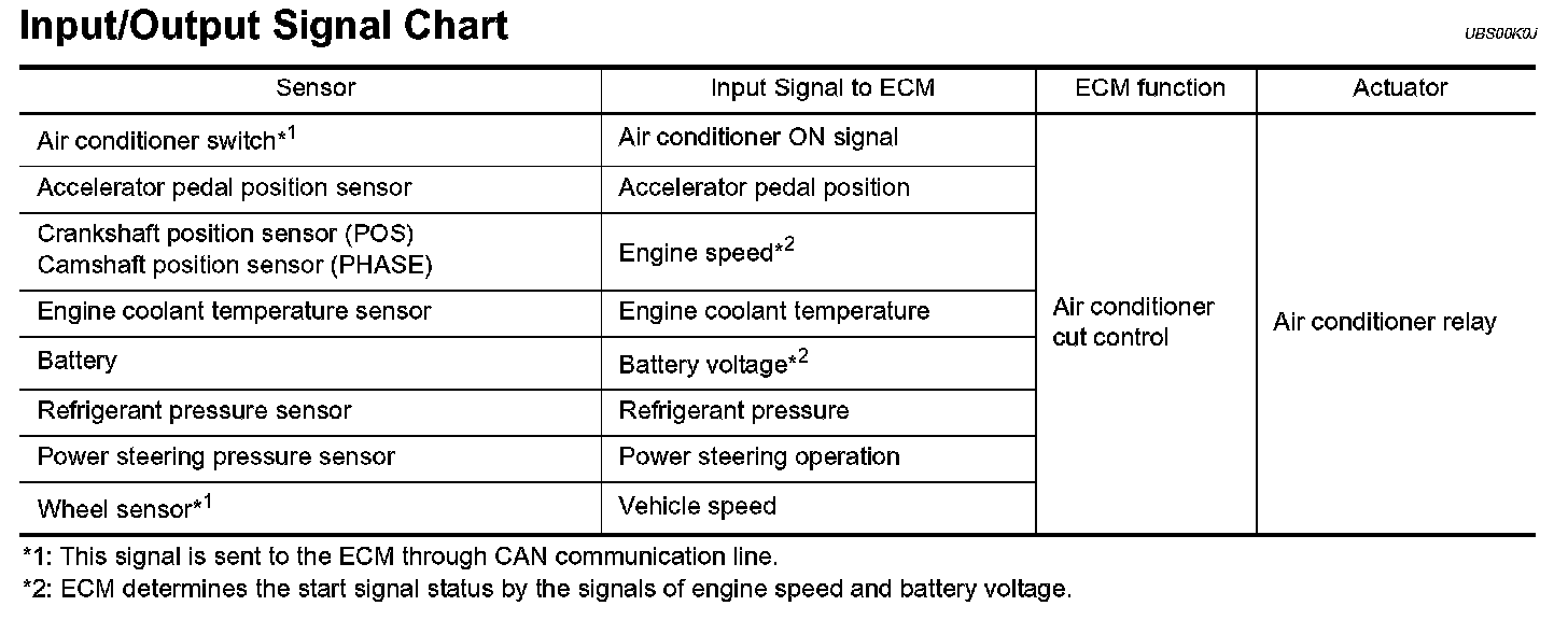 AIR CONDITIONING CUT CONTROLInput/Output Signal Chart