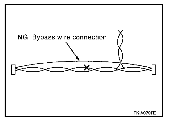 - Do not make a bypass connection to repaired area. (If circuit is bypassed, characteristics of twisted wire will be lost.)