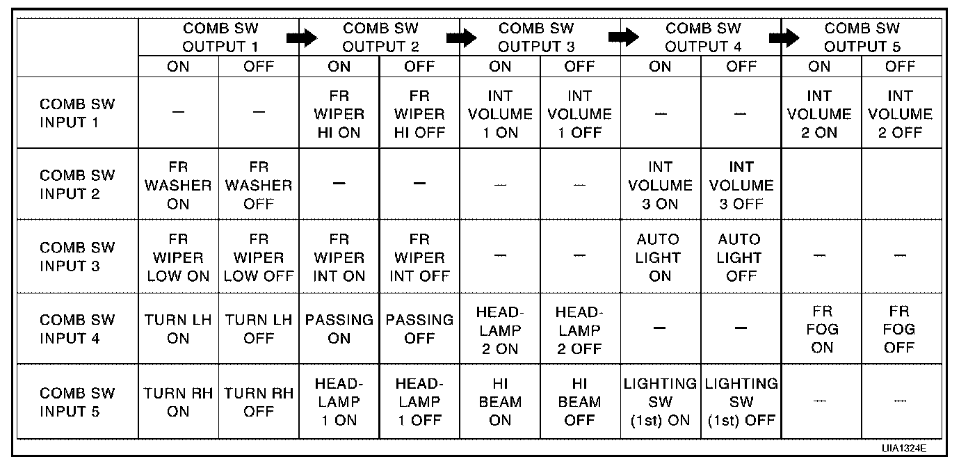 - BCM reads operation status of combination switch by the combination shown in the table.