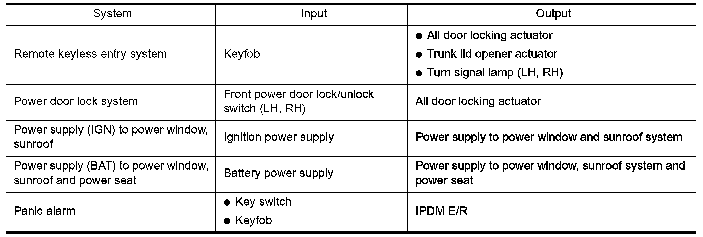 - Power door lock system. Refer to "POWER DOOR LOCK SYSTEM".