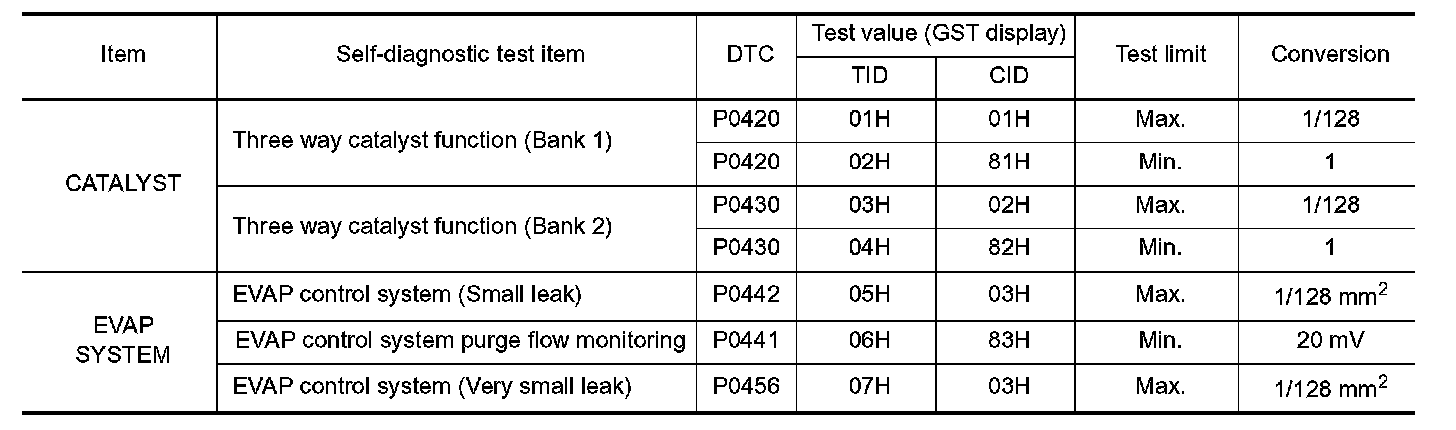 The test value is a parameter used to determine whether a system/circuit diagnostic test is OK or NG while being monitored by the ECM during self-diagnosis. The test limit is a reference value which is specified as the maximum or minimum value and is compared with the test value being monitored.