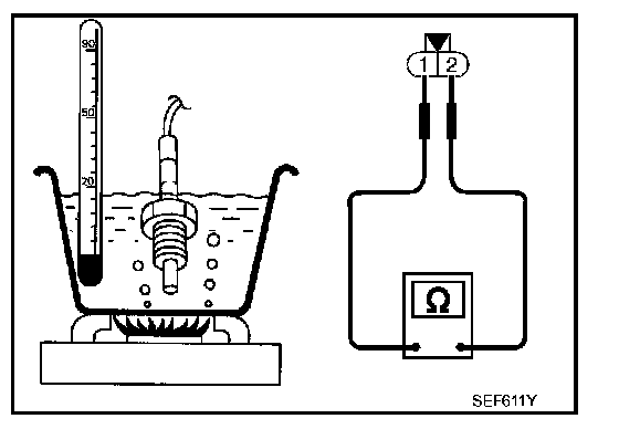 3. Check resistance between EGR temperature sensor terminals 1 and 2 as shown in the figure.