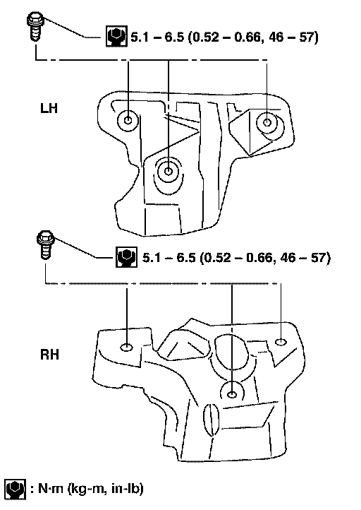 RH heat shield bolts : 5.1 - 6.5 Nm (0.52 - 0.66 kg-m, 46 - 57 inch lbs.)