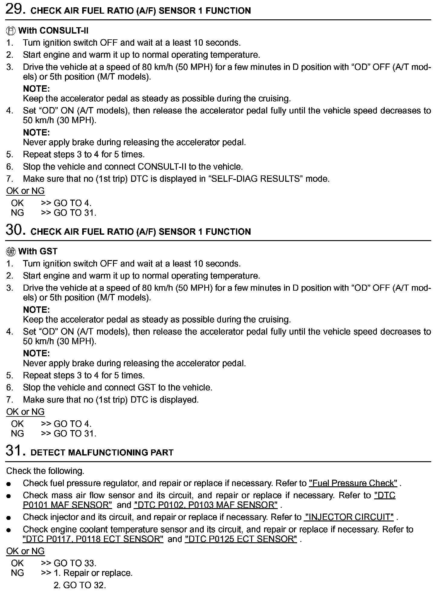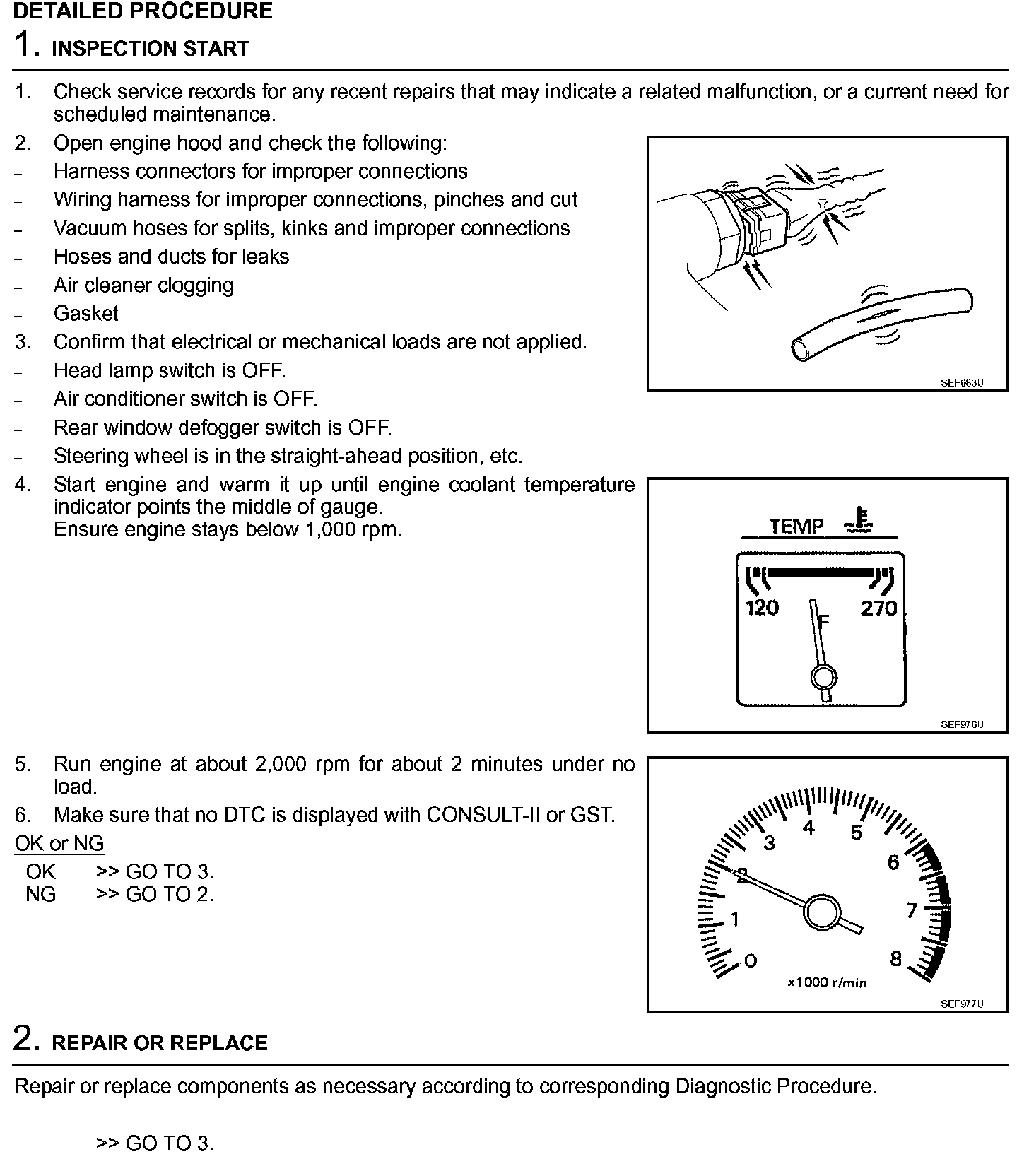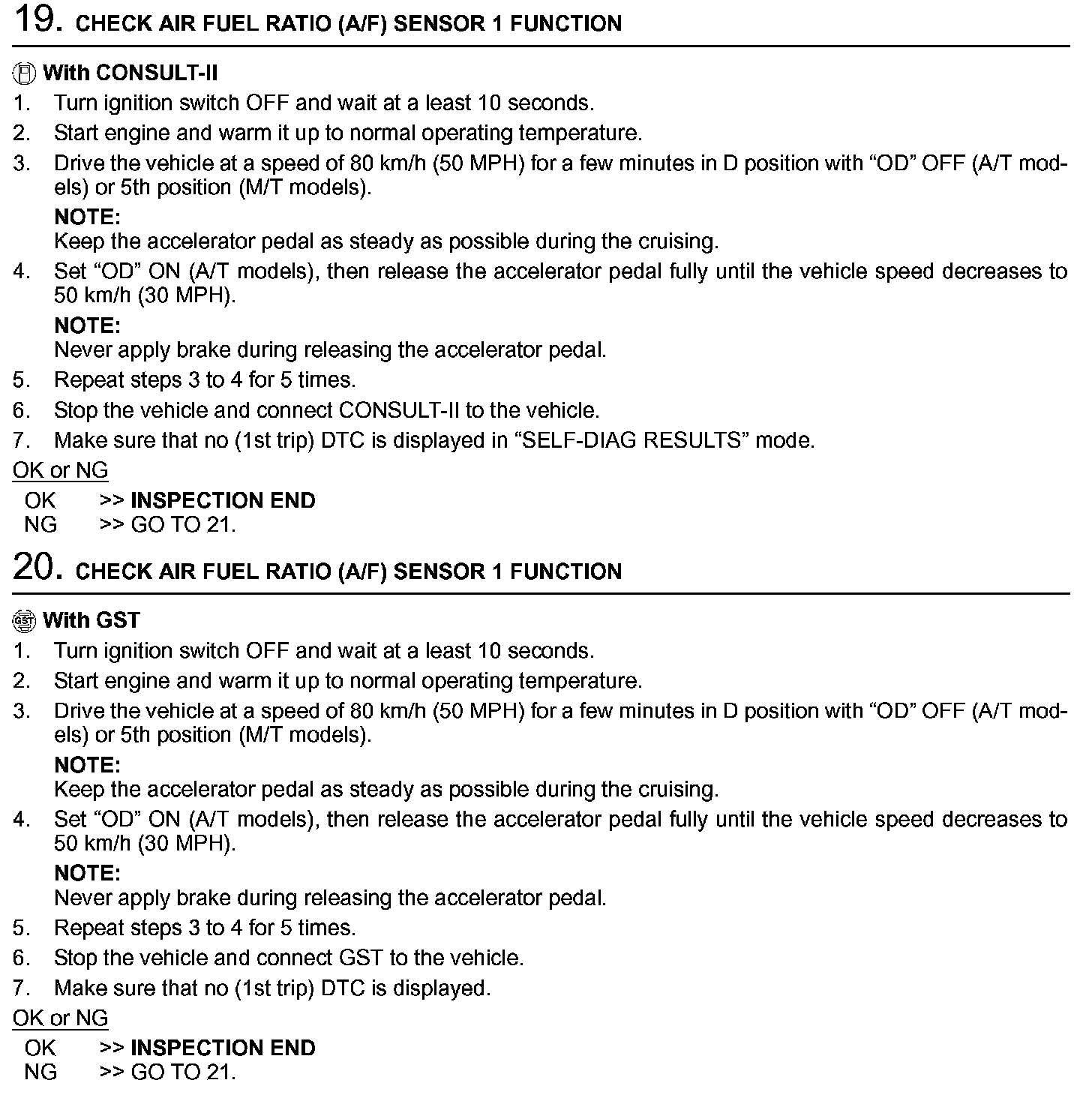 2. On air conditioner equipped models, checks should be carried out while the air conditioner is OFF.