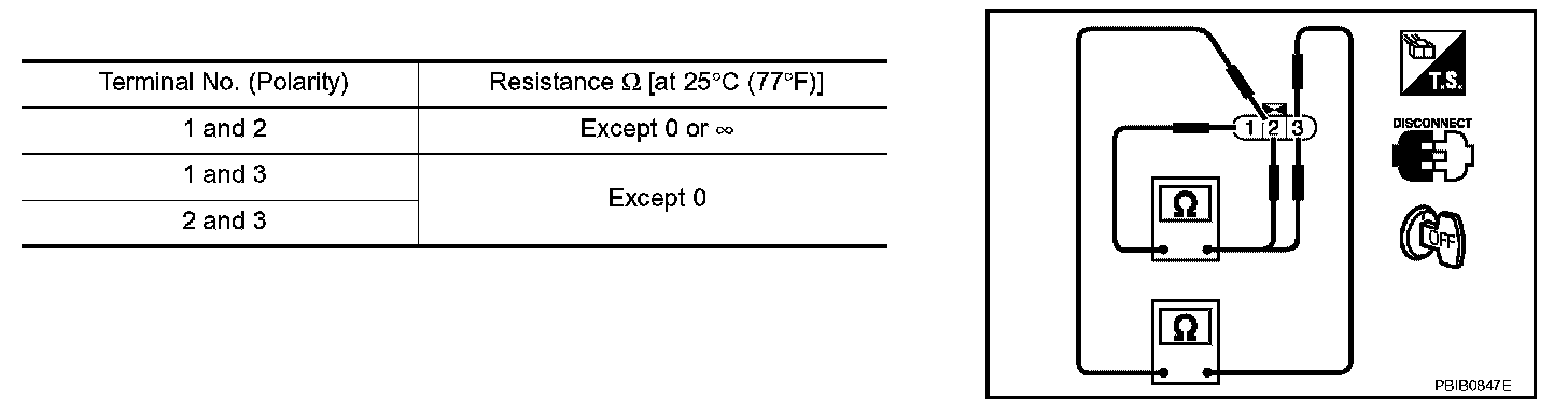 3. Check resistance between condenser terminals 1 and 2.